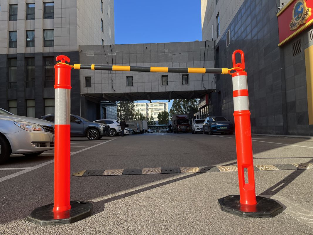 Ce système de barrière rétractable est conçu pour la sécurité et le contrôle de la circulation,avec une barre extensible qui relie les cônes de circulation pour une meilleure visibilité et organisation dans les zones de construction ou les zones de travaux routiers.